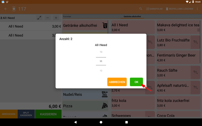 Sieh hier, wie du während der Artikeleingabe die Artikelanzahl verändern kannst.