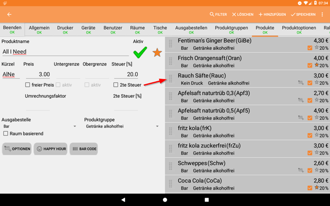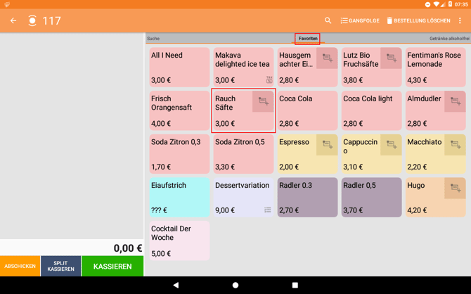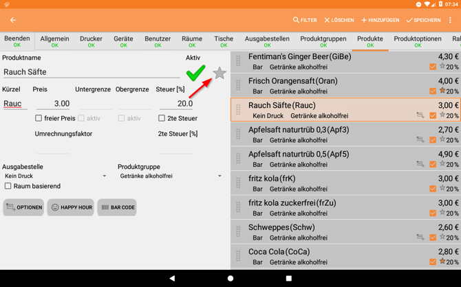 II. Suche das entsprechende Produkt und klicke auf den Stern, um es als Favoriten zu markieren. (Gelb = Favorit, Grau = kein Favorit)