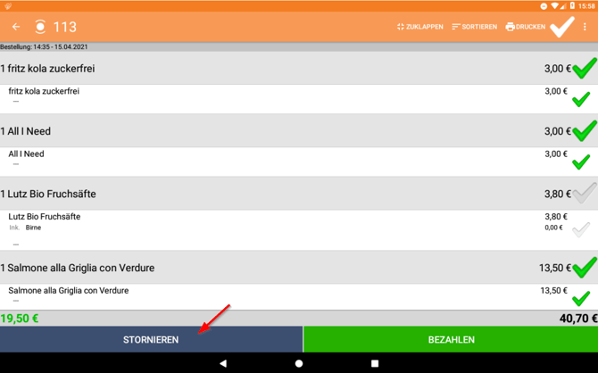 Sieh hier, wie du Buchungen, die noch nicht kassiert wurden, von einem offenen Tisch stornieren kannst.