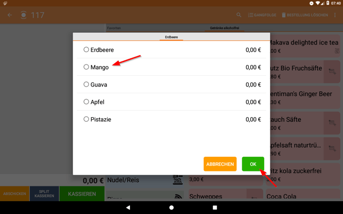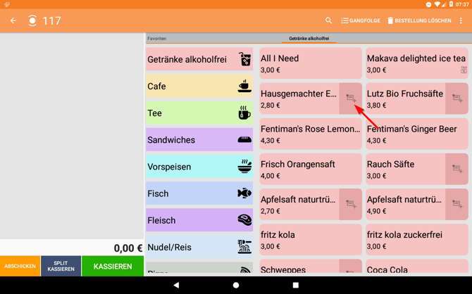 I. Wähle den Tisch und tippe beim entsprechenden Produkt auf das "+"-Symbol.