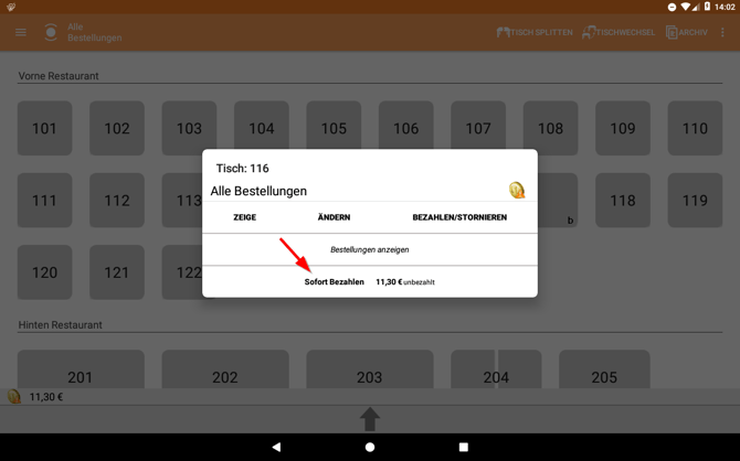 I. Tippe lange auf den Tisch, den du abrechnen möchtest.